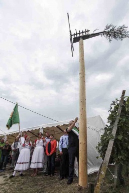 Vinogradari Udruge Gerico na podizanju klopoteca u Jesenju